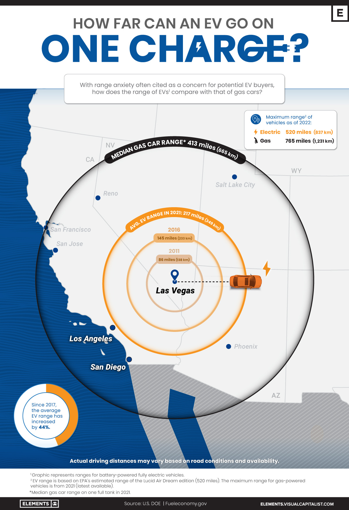 Visualizing the Range of Electric Cars vs Gas Cars Visual Capitalist